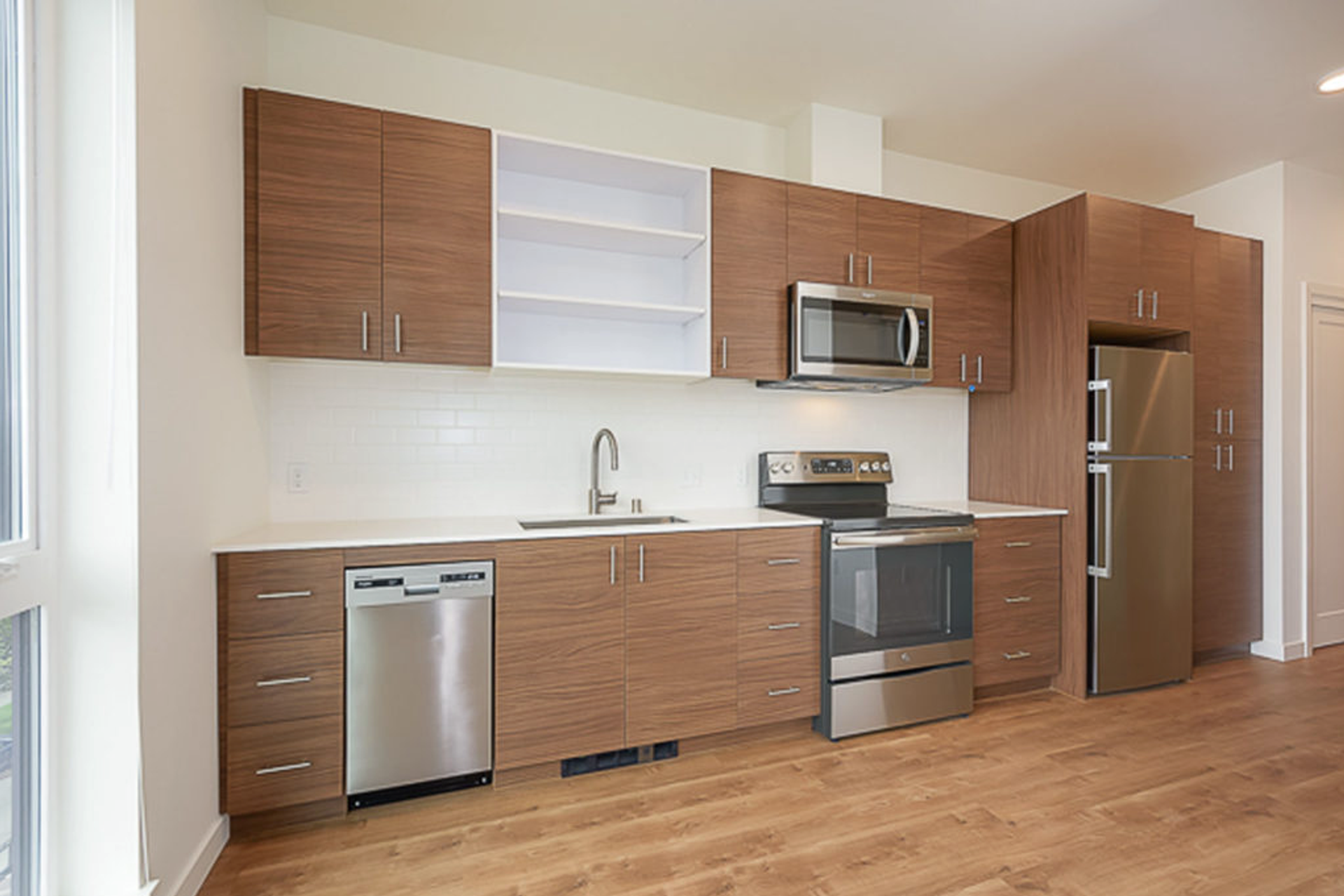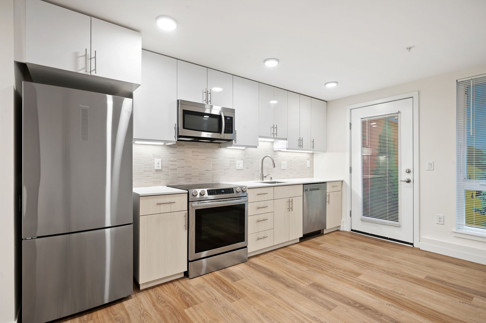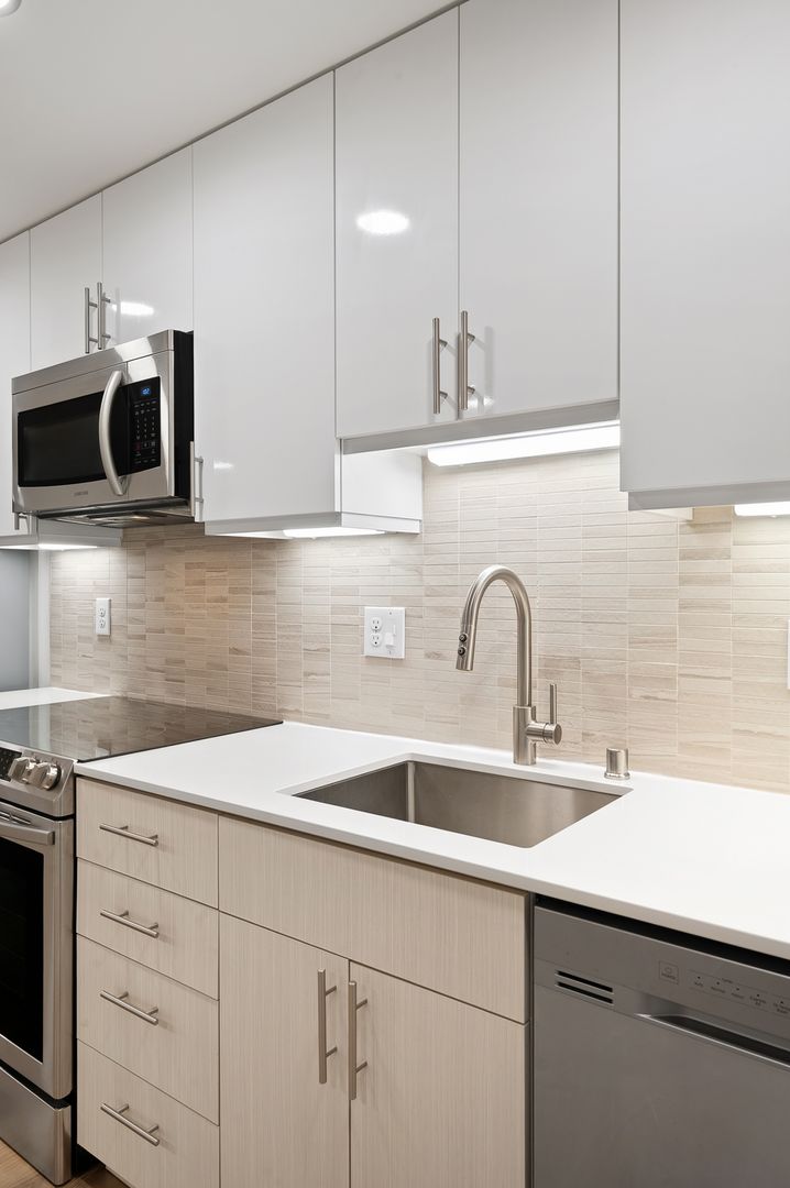 • Quartz countertops and tile backsplashes